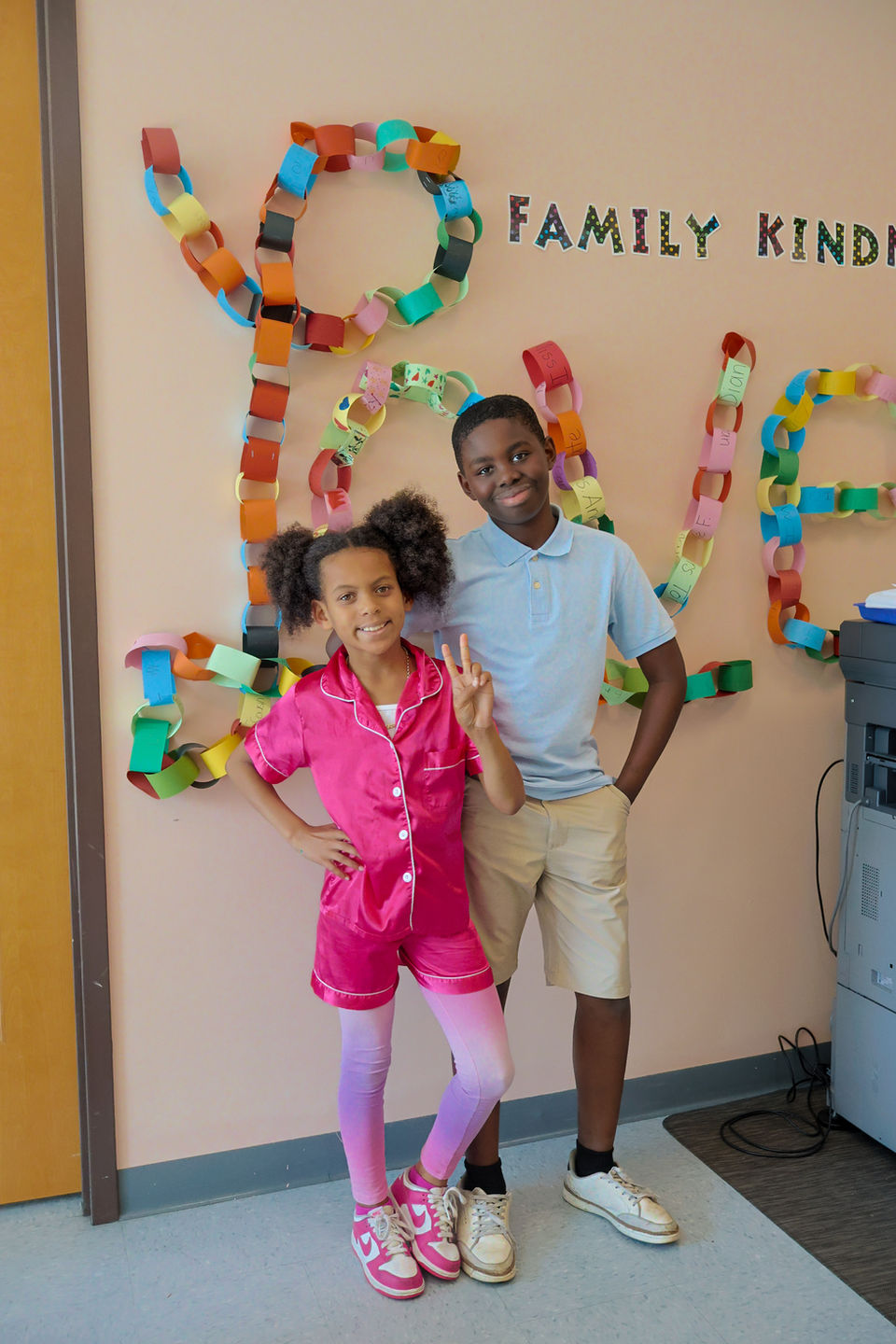 and students dressed up in fun pink, red, or heart decorated outfits. Art class was full of